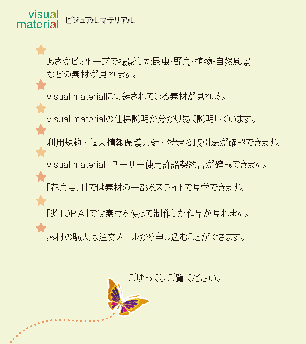 ※ビジュアル制作のための色々ある材料のことを総称として「素材」と呼んでいます、写真も素材と呼ばれ