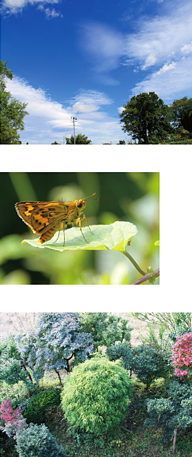 実のなる木や花が咲く植物を植えたところ昆虫や鳥が沢山集まってきました。